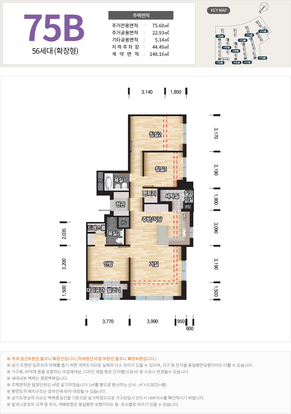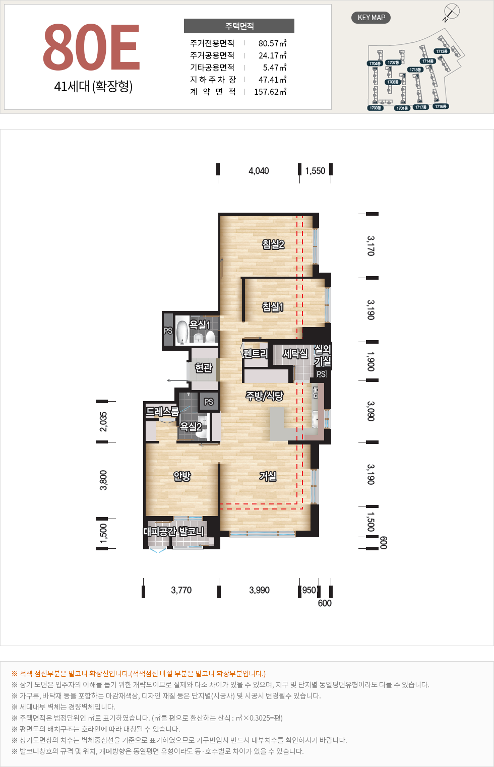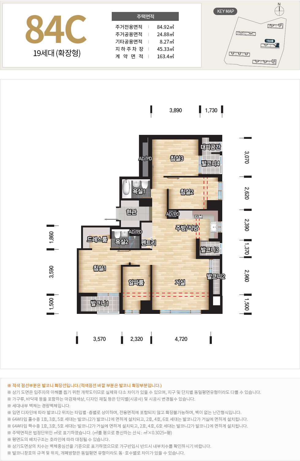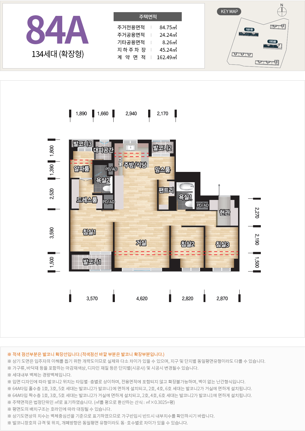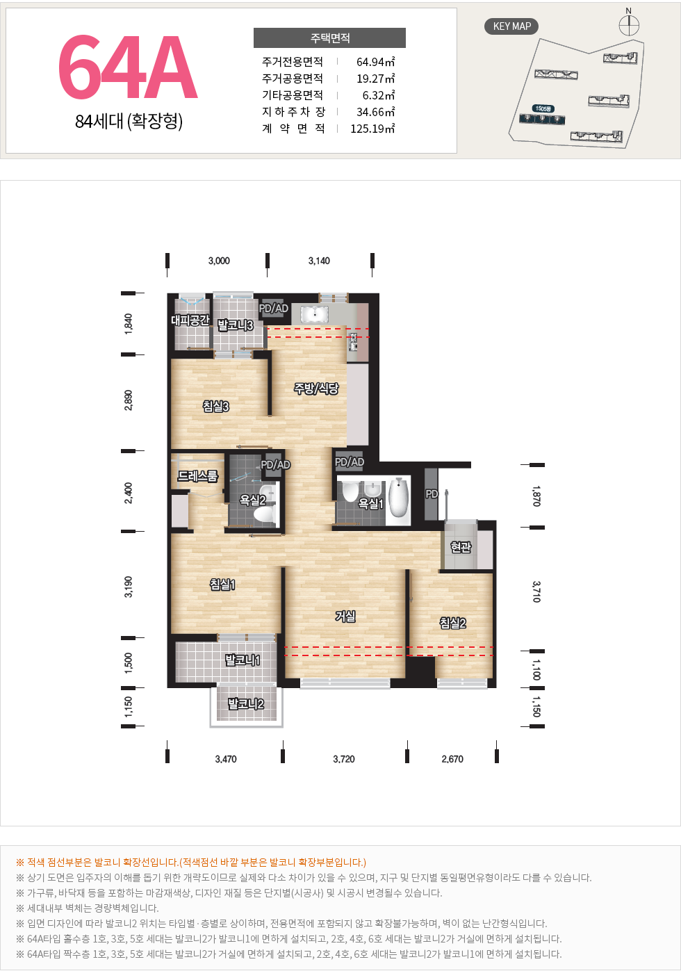 5블럭의 제일 큰 평면도로, 물량도 많고 인기도 많을 예정인 평형 입니다.