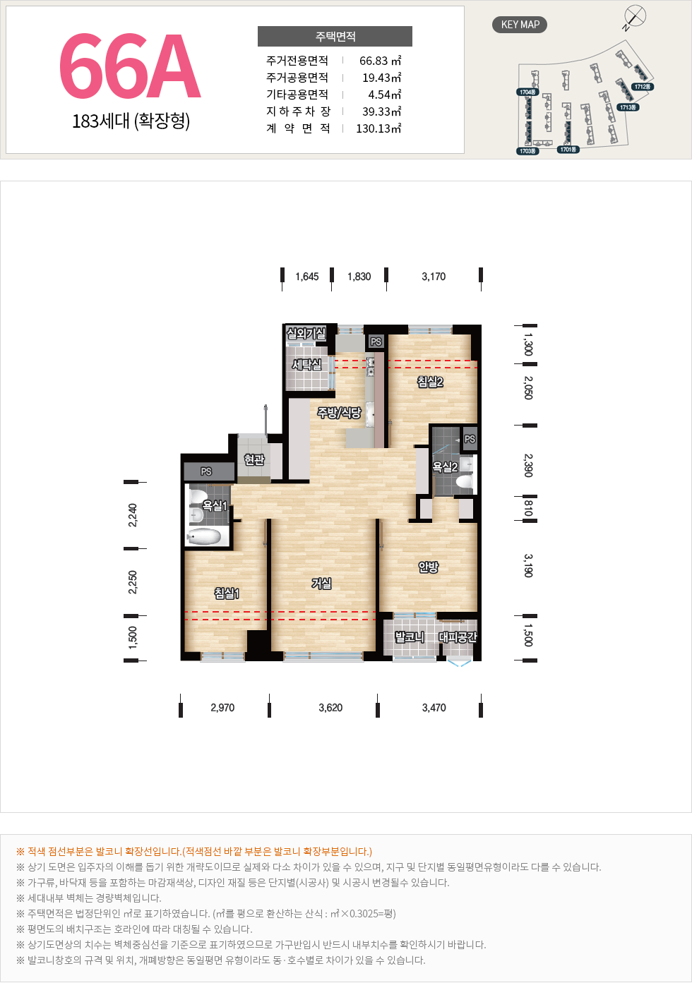아파트 외관의 미를 위해서 오픈발코니가 나온거 같습니다. 하지만 오픈발코니는 엄청난 단점이 많습니다. 위에서 오물이 떨어지거나, 새똥, 비로 인한 구정물등 오염 및 관리가 어렵습니다. 낭만적인 뷰를 생각하시겠지만, 실상 매우 활용도가 떨어진다고 봅니다. 특히 확장이 안되기 때문에 66㎡보다 거실 사이즈가 작은 것으로 나타나 있습니다.