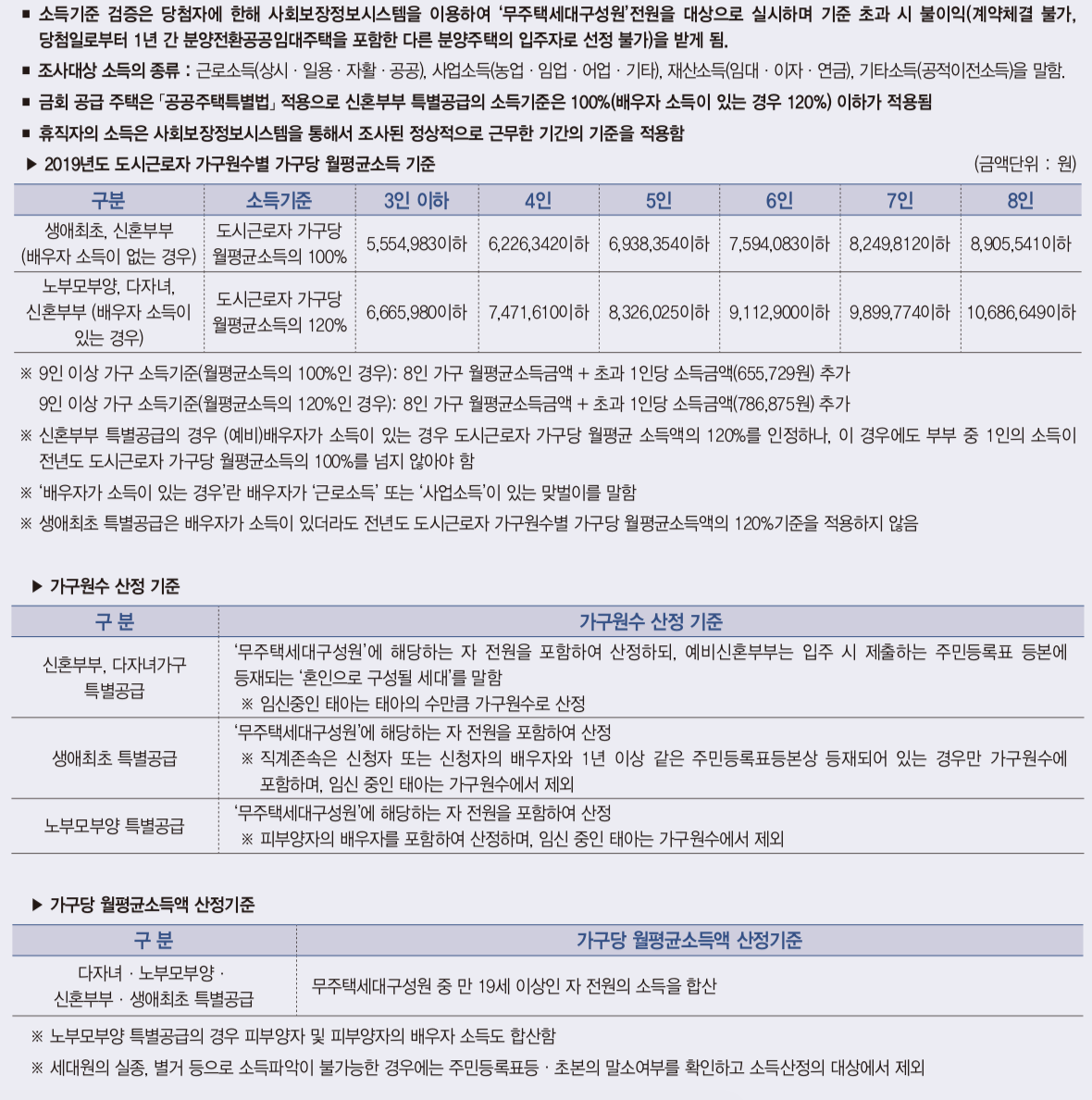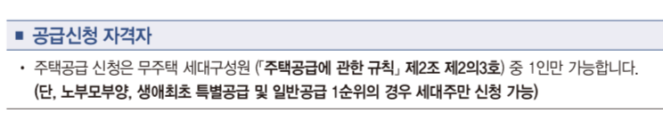 - 소득 : 도시근로자 월평균 100% 이하 (맞벌이 : 120%)