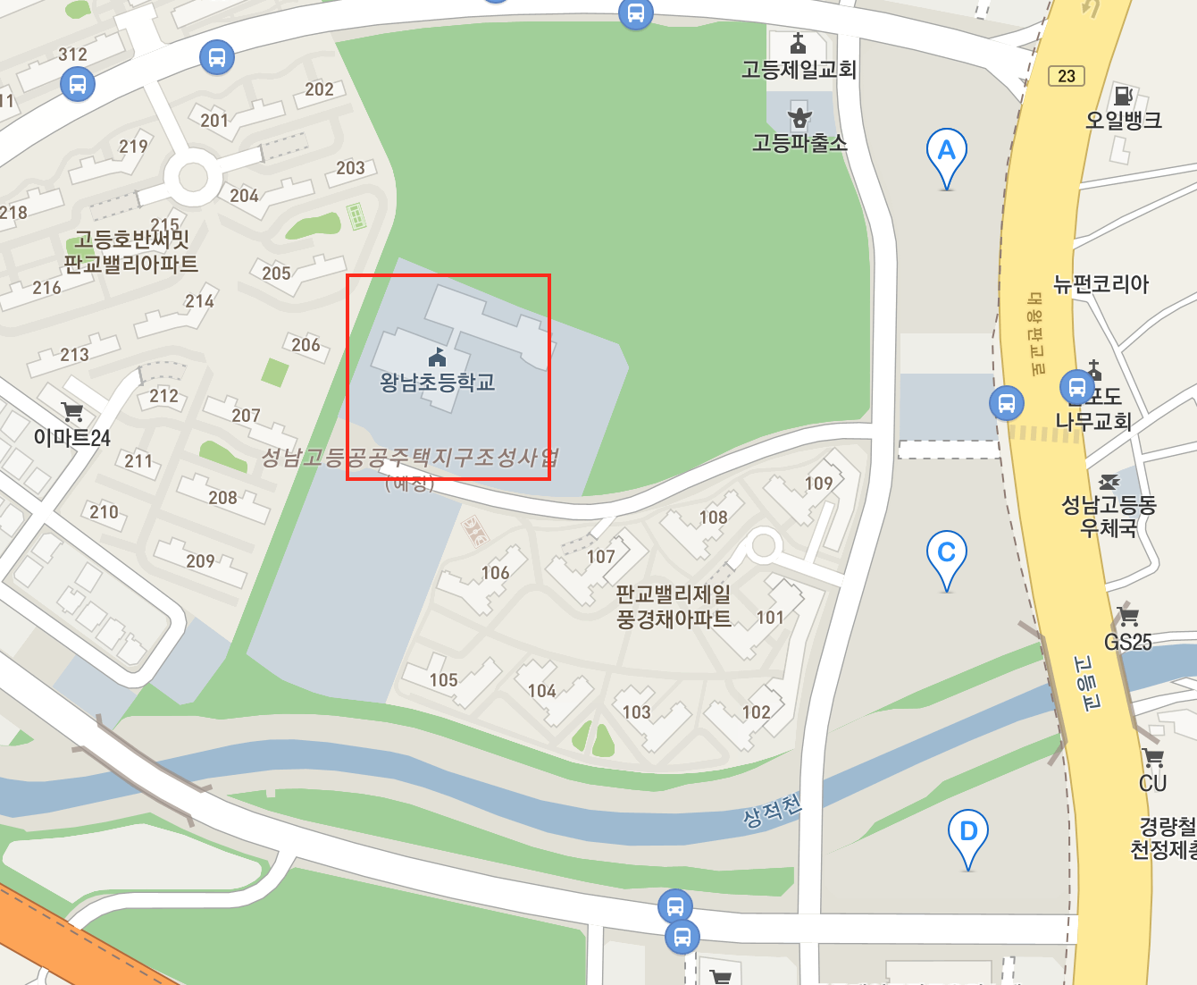 판교밸리자이의 경우 학교는 도보로 가능한 거리에 왕남 초등학교가 있습니다.