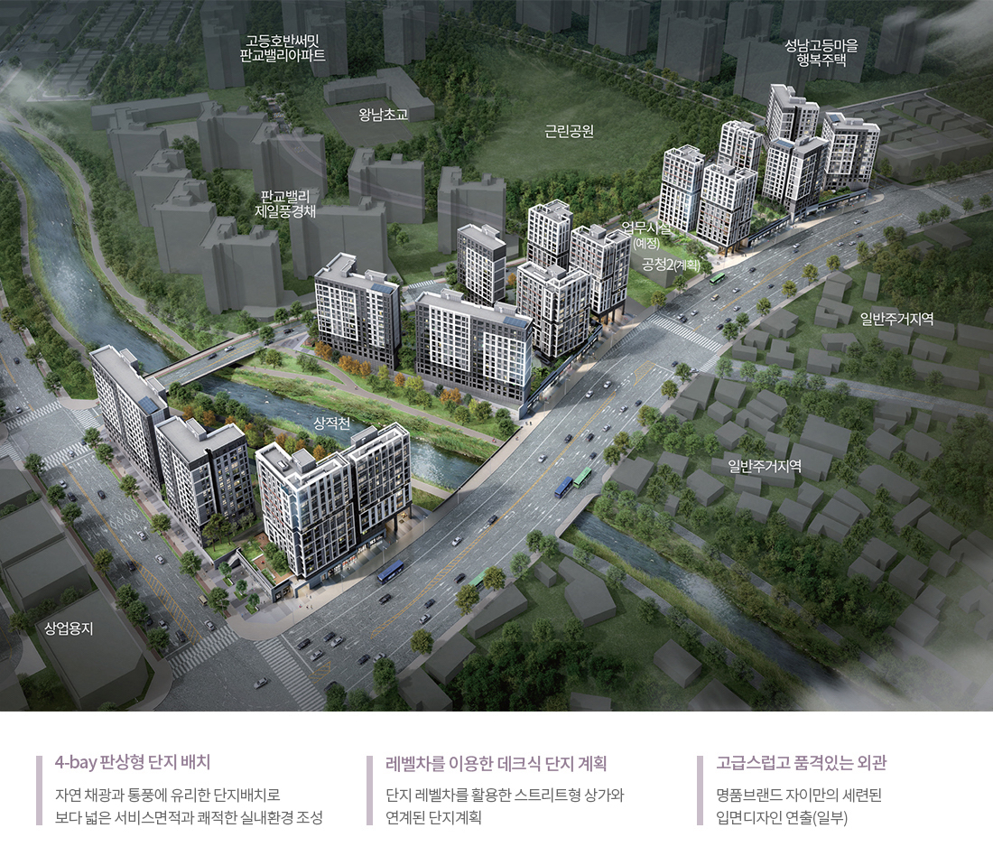 판교 밸리자이는 강남과 판교 사이를 잇는 단지로 강남과 가까우면서 판교의 편의시설을 이용할 수 있는 단지입니다.