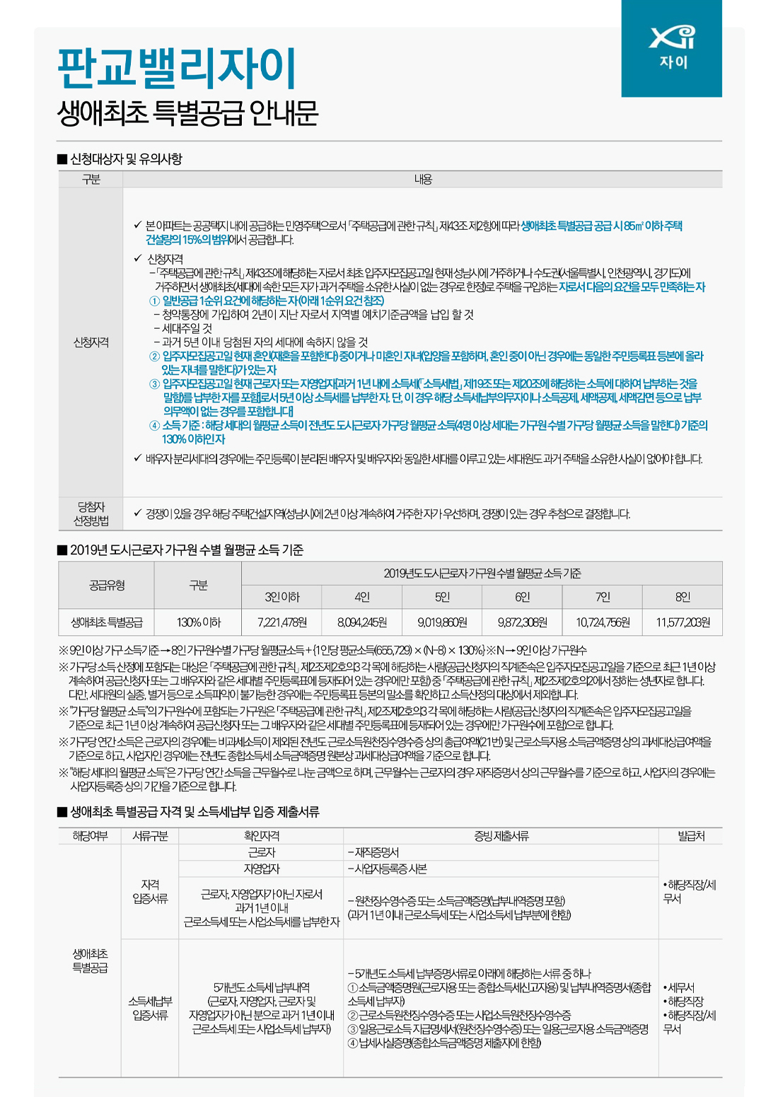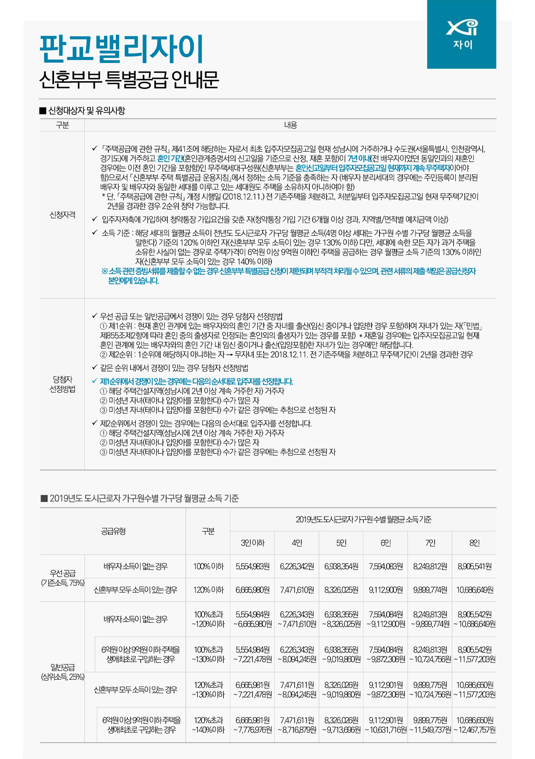 가구당 월평균 소득기준을 충족. (민간분양은 전년도 소득으로 산정)