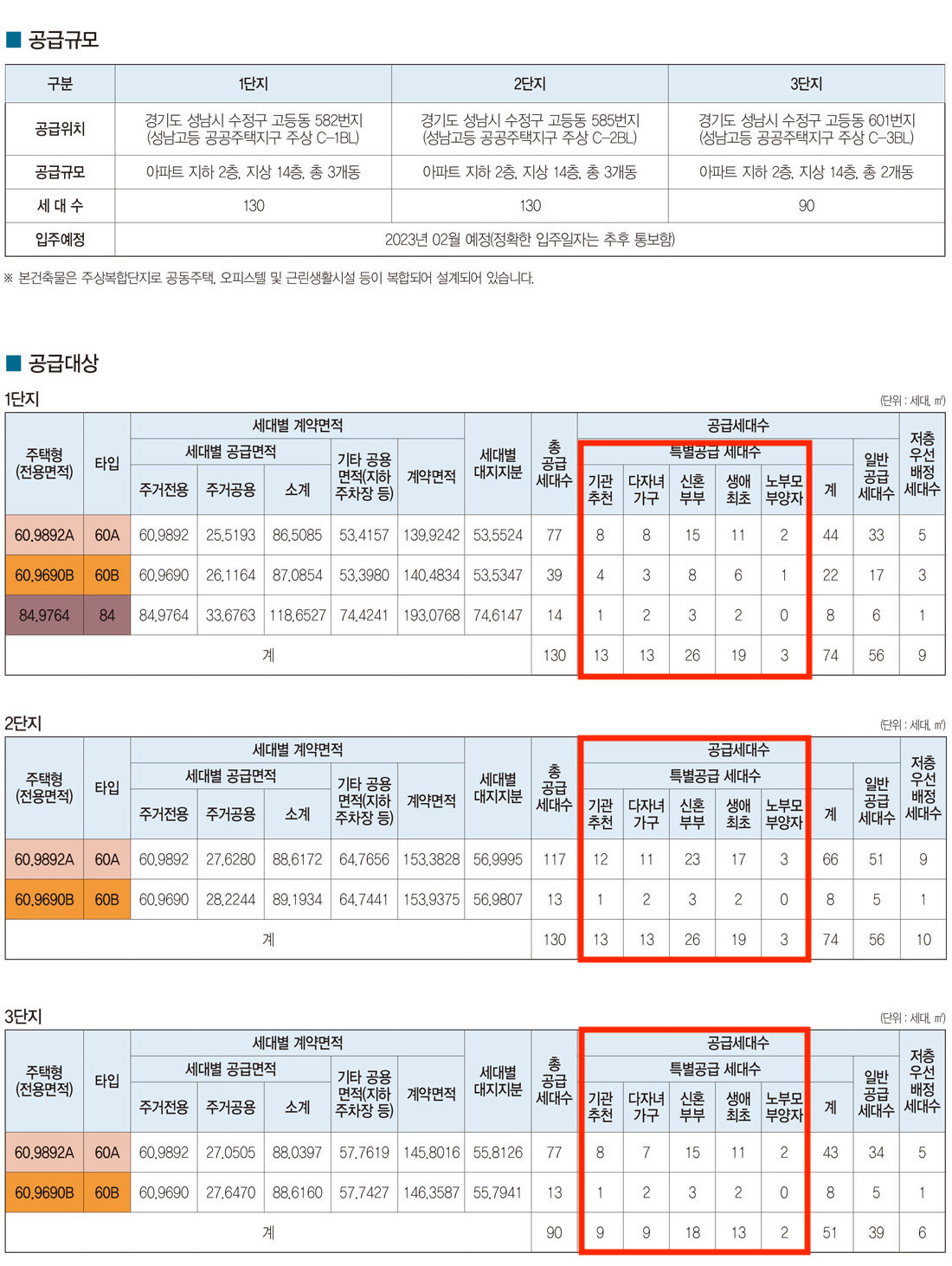 특별공급 세대수 및 유의사항