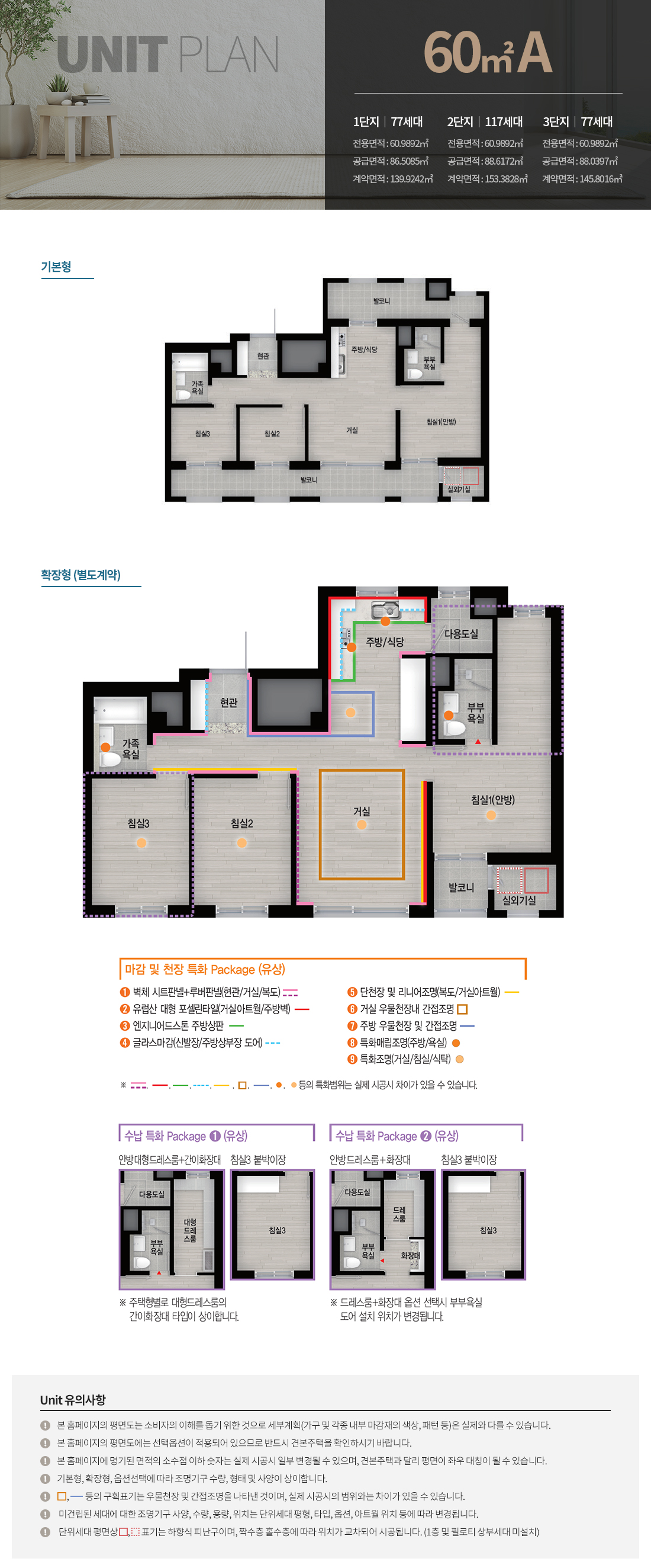 60㎡A 타입만 공개되어 있습니다. 84㎡ 타입의 모델하우스가 없어서 아쉽네요.