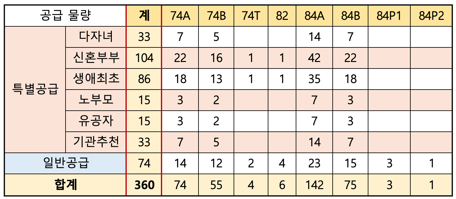 또한 특별공급과 신혼희망타운은 별도로 신청이 가능합니다. 하지만 신희타 평수는 작기때문에 이점 유의하세요.