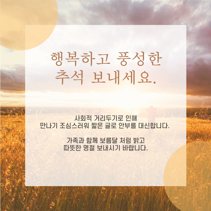 가족과 함께 보름달처럼 밝고 따뜻한 명절 보내시기 바랍니다.