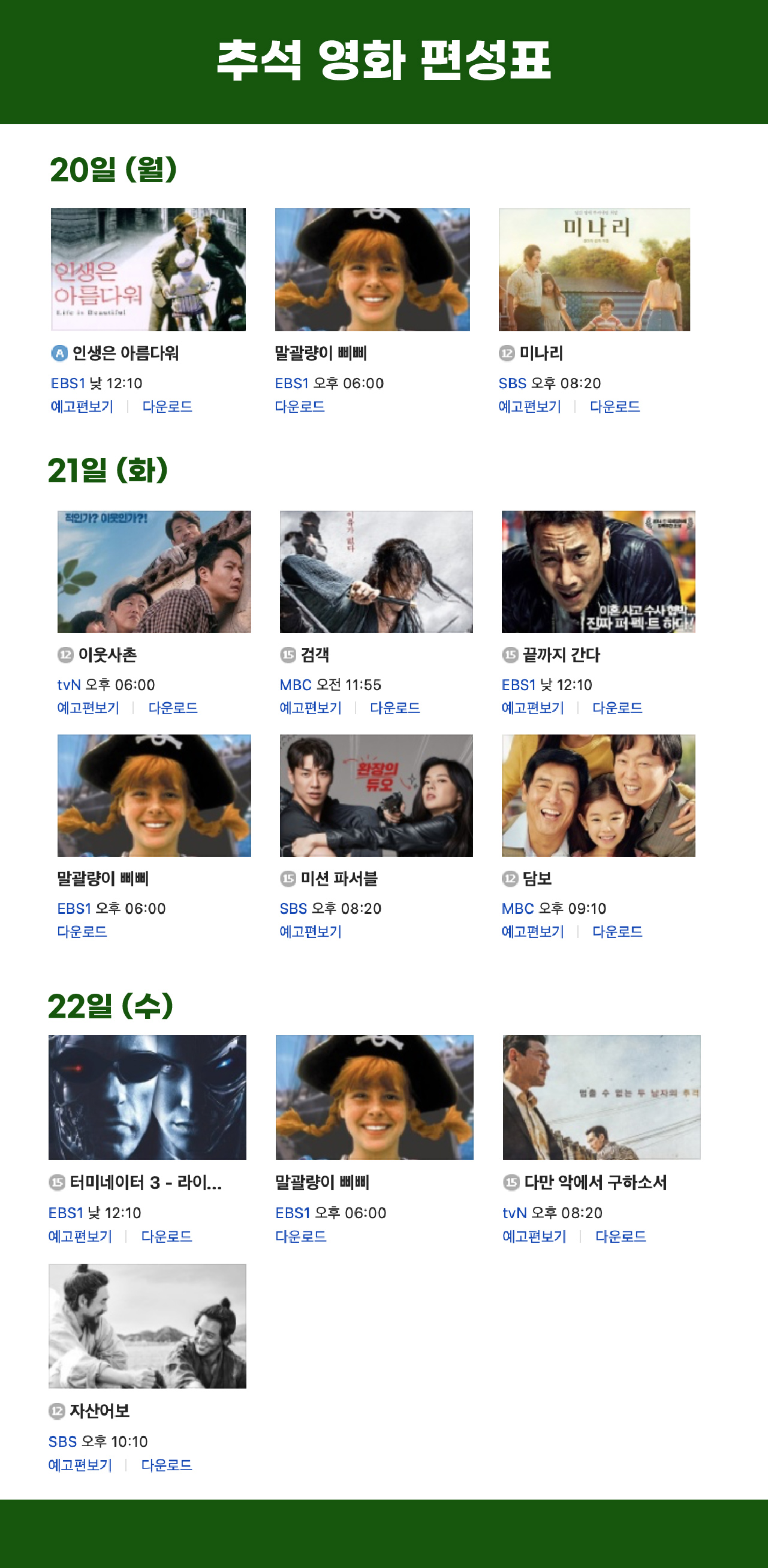 2021 추석 특선영화