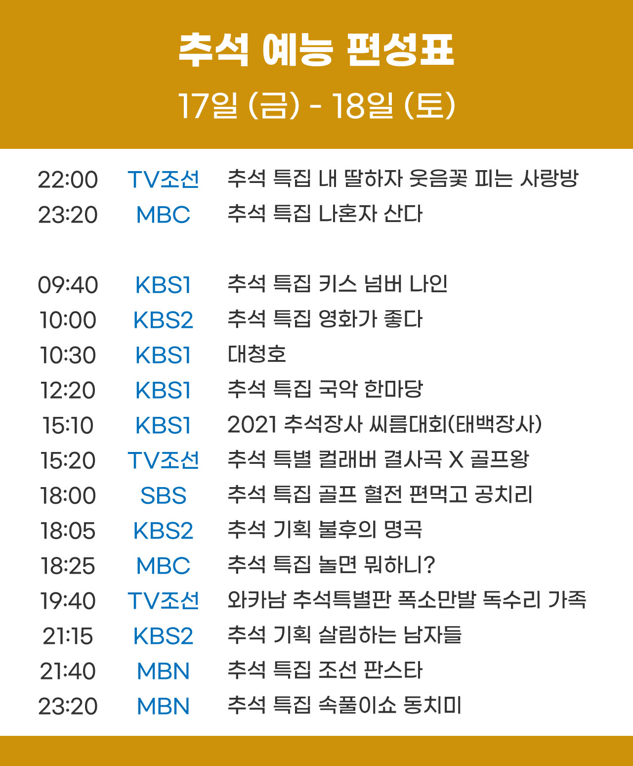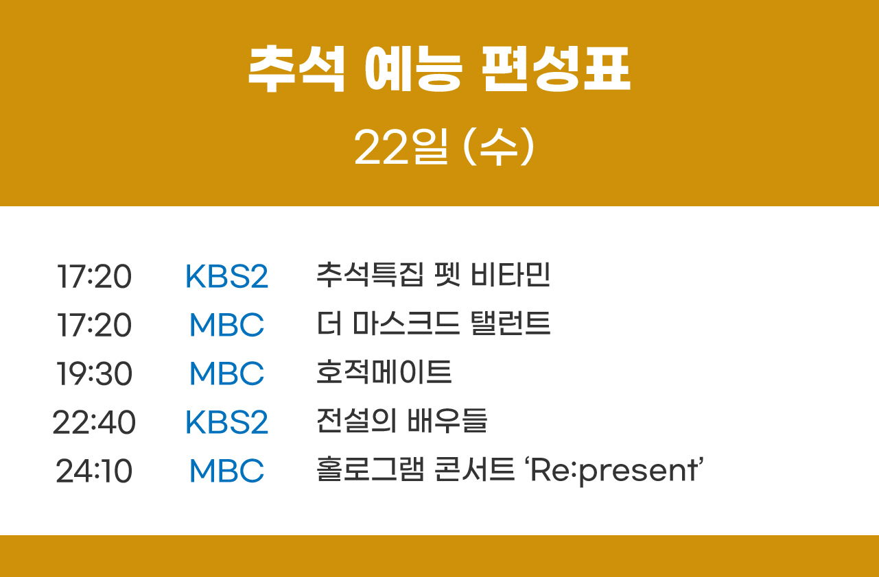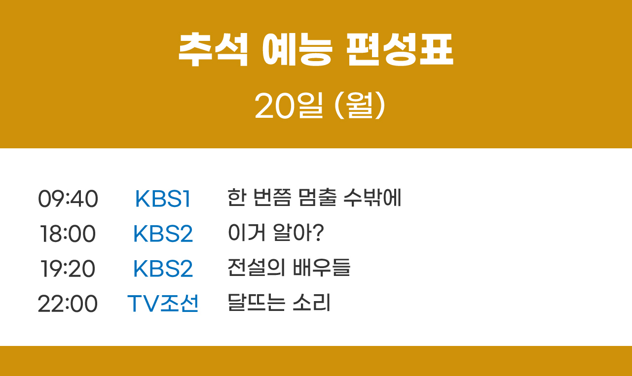 추석 예능, 영화 편성표 시간대별로 보기 쉽게 정리! (공중파/케이블)