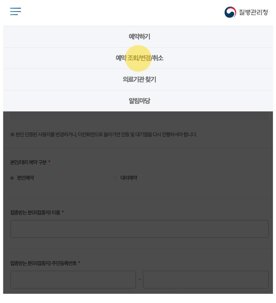 ③ 예약 조회/변경/취소에 들어가면 본인 인증 및 예약 변경이 가능합니다.