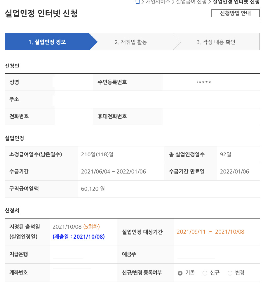 벌써 한달이 지나서 실업급여 5차 신청일이 되었어요.