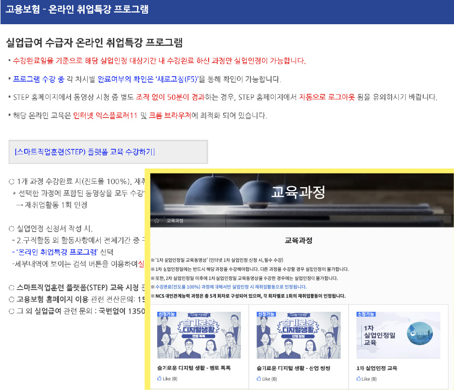 그럼 온라인 STEP강의로 실업급여 신청하는 방법 알려드릴게요.