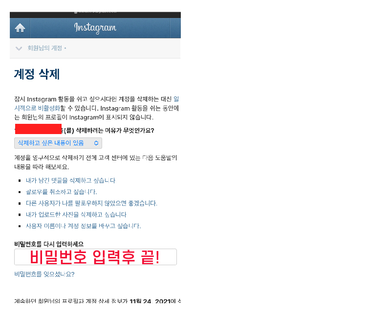 인스타그램 삭제&탈퇴 하는 방법.
