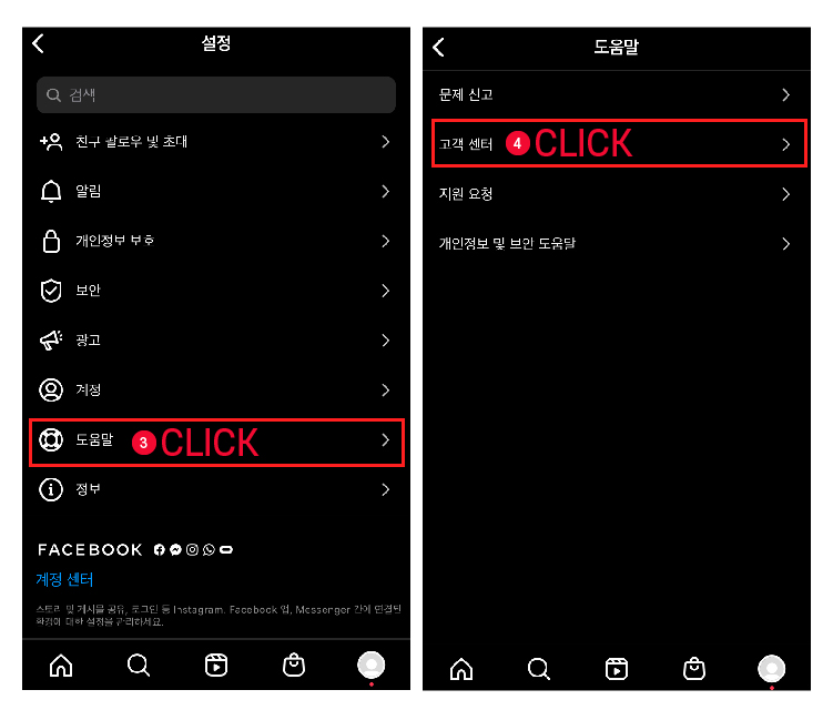 2. 하단 도움말 > 고객센터로 들어가주세요.