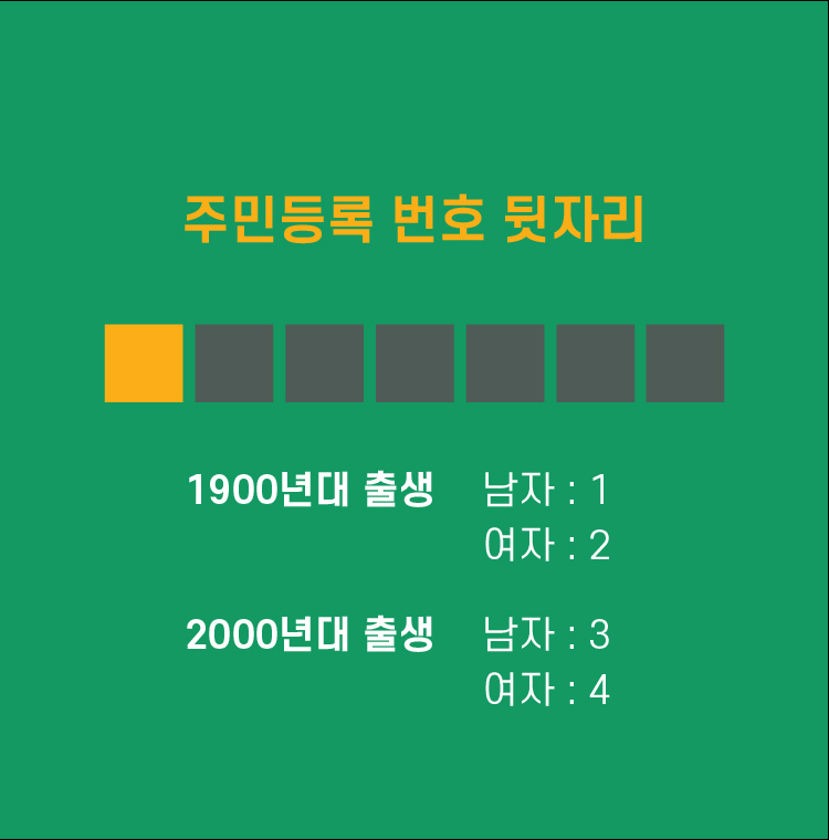 뒷자리 중 첫번째 숫자는 성별을 구별합니다.