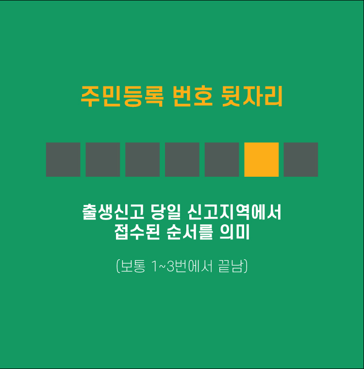 마지막에서 한자리 앞 숫자 1개는 출생신고 당시 신고지역에서의 접수된 순서를 의미하는데요.