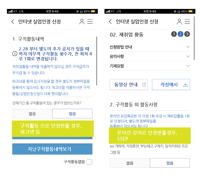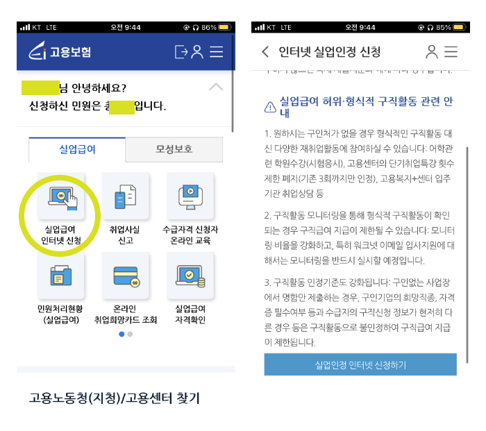 실업급여 5차 인터넷 실업인정 신청방법. (방문X, 구직외활동 STEP)