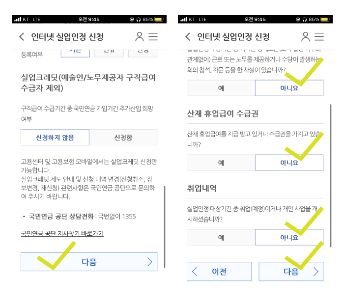 실업급여에 정직하게 임하고 있다면 아니요라고 체크하시면 됩니다.
