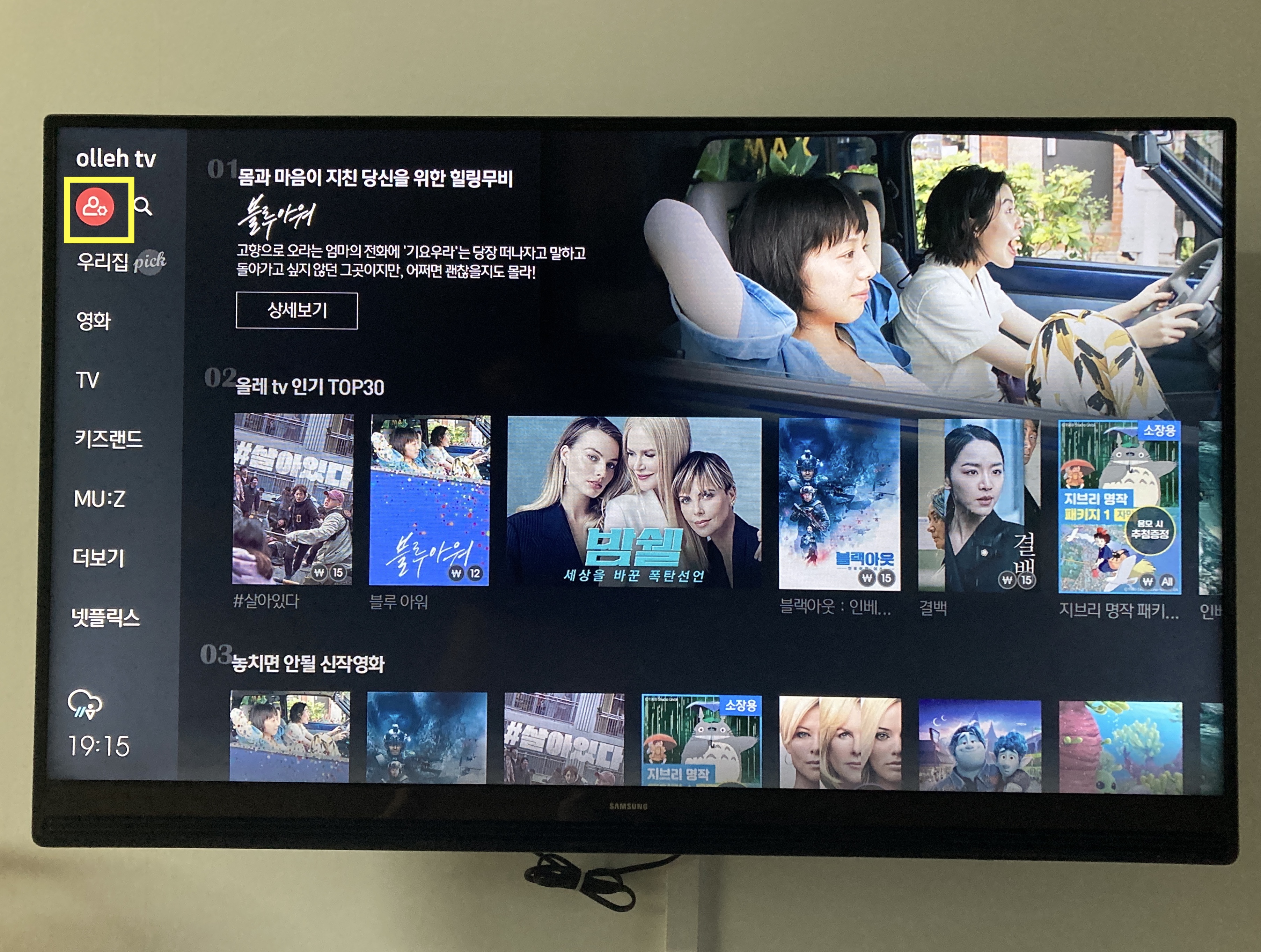 먼저 리모컨의 홈키를 눌러 올레티비 서비스 화면으로 가세요.