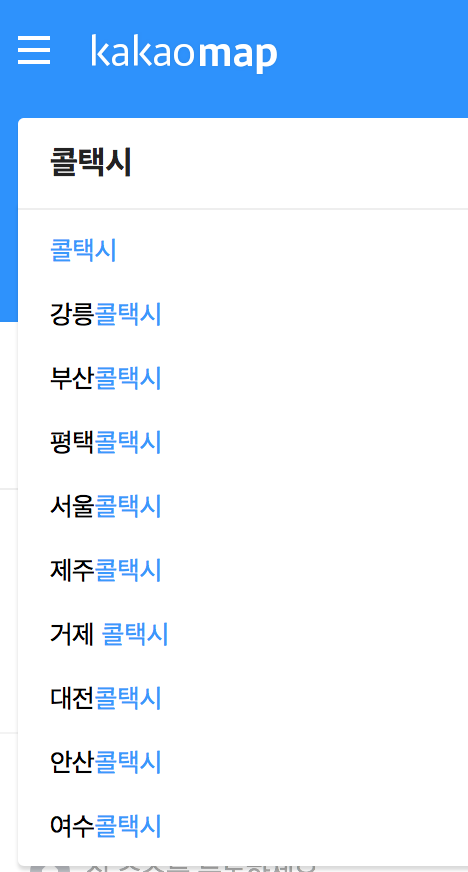 이렇게 콜택시만 적어도 지역명+콜택시가 자동 생성됩니다.