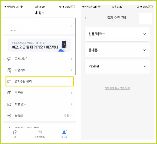 카카오 택시 사용법, 자동결제 까지 한눈에.