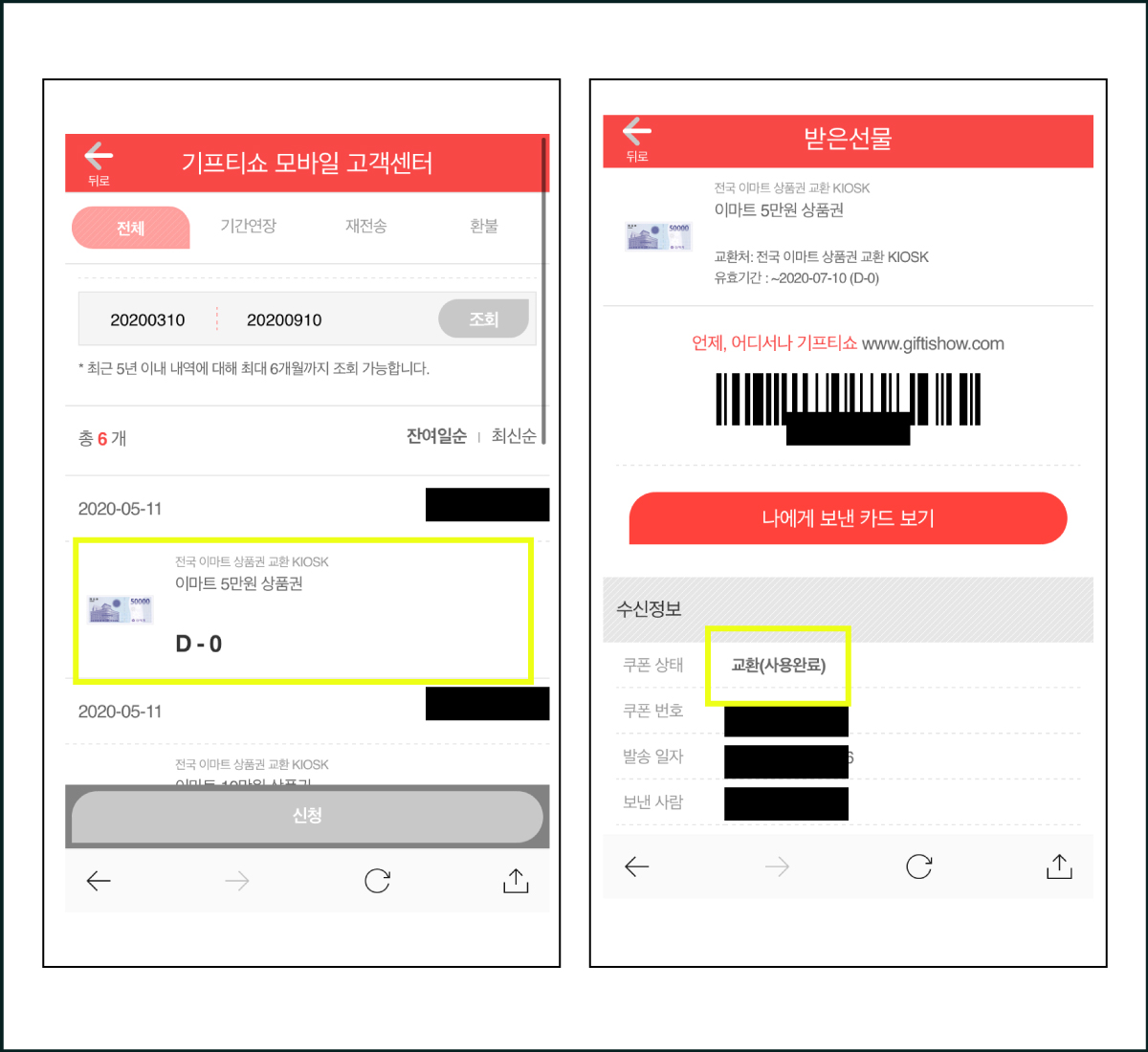 기프티쇼에서 발행한 쿠폰 사용여부 알아보기