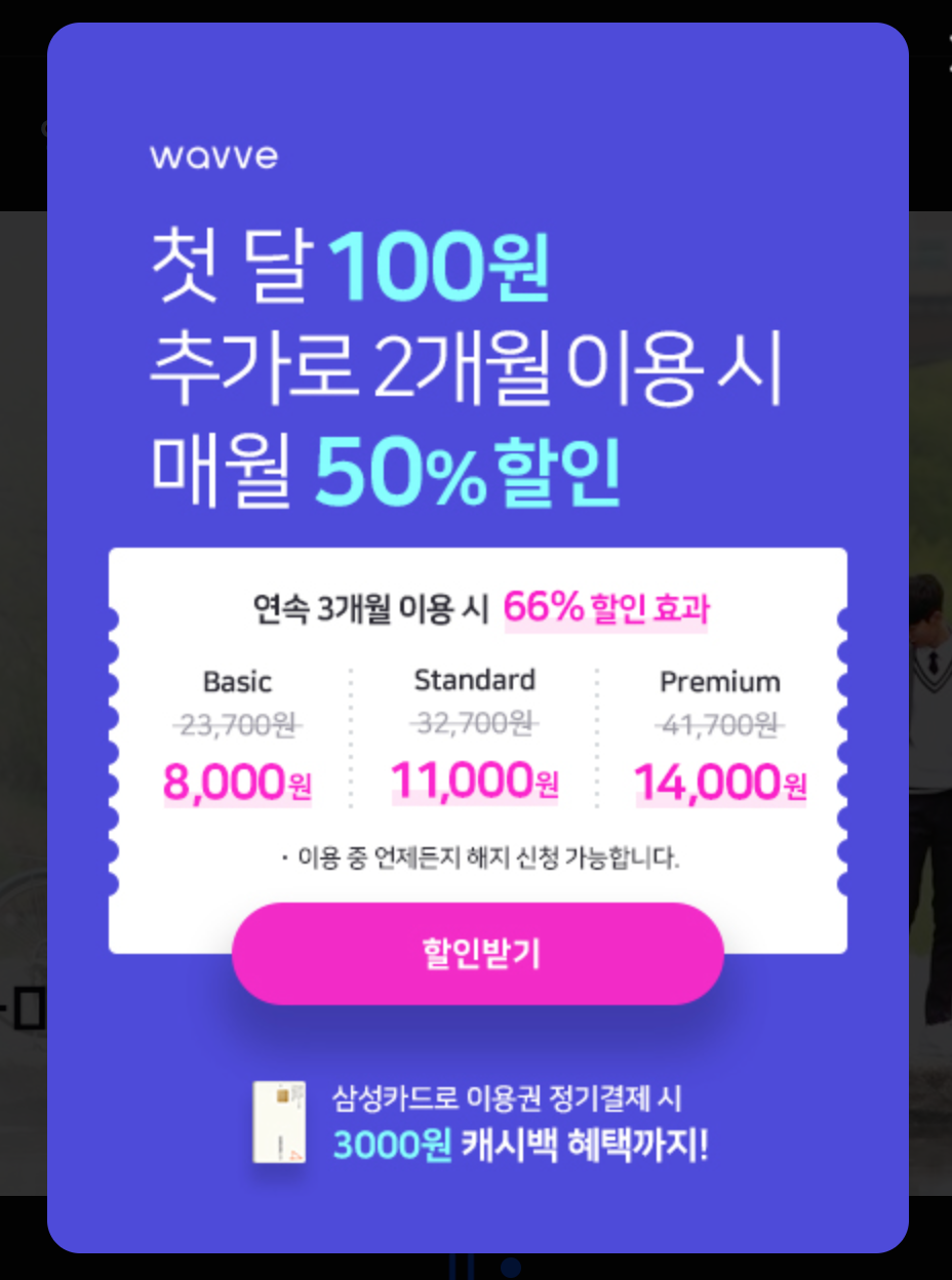 웨이브에서는 신규 가입 혜택도 주고 있으니 이용해 보시면 좋을거 같아요.